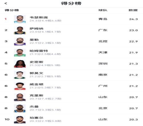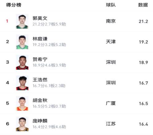 截至1月14日,本賽季CBA場(chǎng)均得分榜前10名里只有郭昊文一名國(guó)內(nèi)球員,剩下的都是外援。